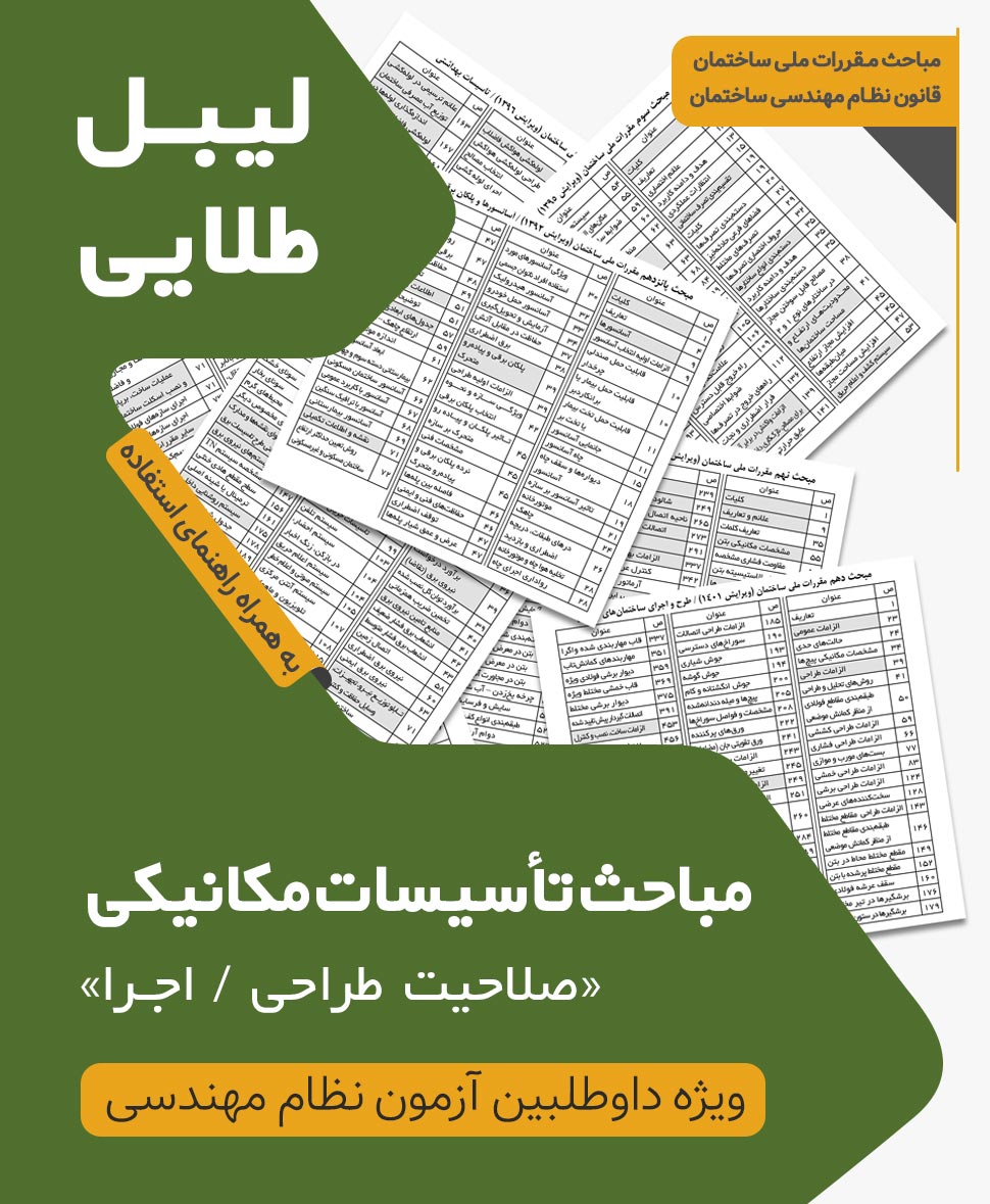لیبل طلایی مباحث ویژه آزمون نظام مهندسی تاسیسات مکانیکی اجرا طراحی