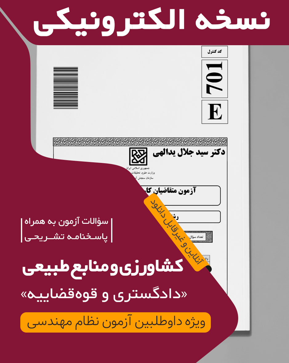 داوطلبانی که تمایل به دریافت سوالات آزمون کارشناس رسمی آخرین دوره برگزار شده آزمون را دارند میتوانند «کتاب الکترونیکی سوالات و پاسخ تشریحی کشاورزی و منابع طبیعی قوهقضاییه آزمون آبان ۱۴۰۳» را تهیه نمایند.
